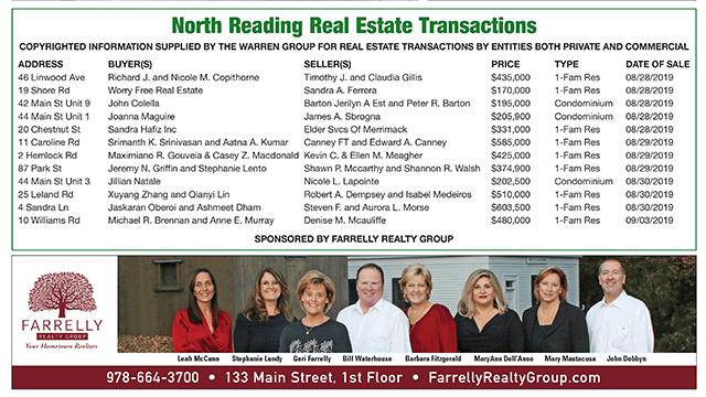 North Reading Real Estate Transactions published September 19, 2019