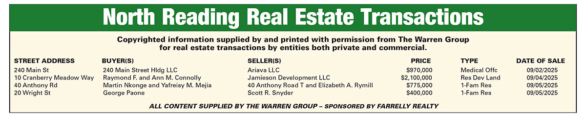 North Reading Real Estate Transactions published September 25, 2025