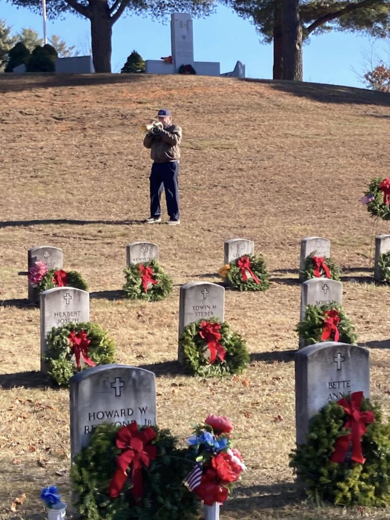 HUGO W. WIBERG III plays “Taps” during the Wreaths Across America ceremony at Riverside Cemetery. (Courtesy Photo)
