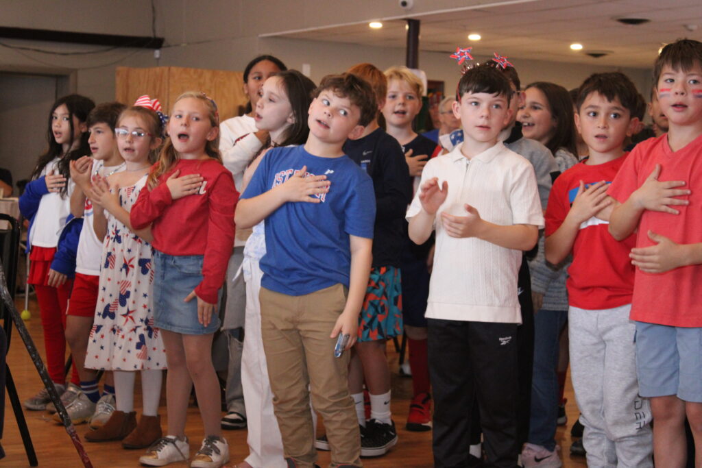THIRD GRADE chorus members from the Hood School enthusiastically sang patriotic songs for the veterans attending the Veterans Breakfast. (Maureen Doherty Photo)