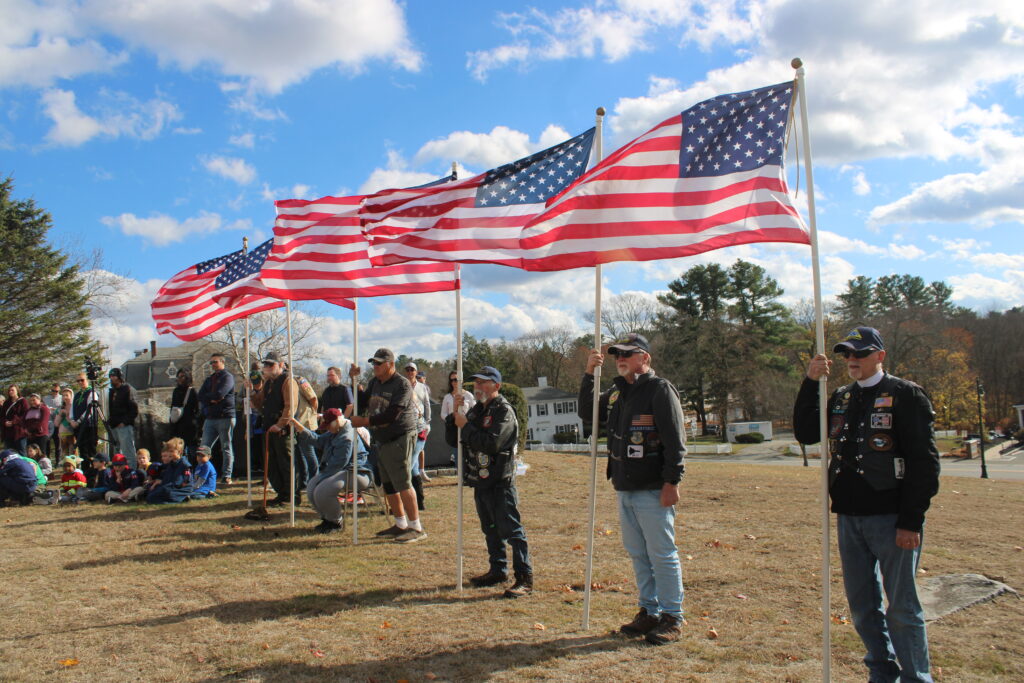 STANDING GUARD throughout the Veterans’ Day ceremony were members of the Patriot Guard Riders. (Maureen Doherty Photo)