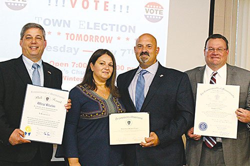 Mauceri first thanked his wife for all that she has put up with throughout the years and noted that spirit of volunteerism is shared by her as well. “She has joined the Council on Aging and the library, and I thank her. I also want to thank everybody here tonight and all the citizens of North Reading for supporting me over the years. … Without all of us working together, nothing would get done,” he said.