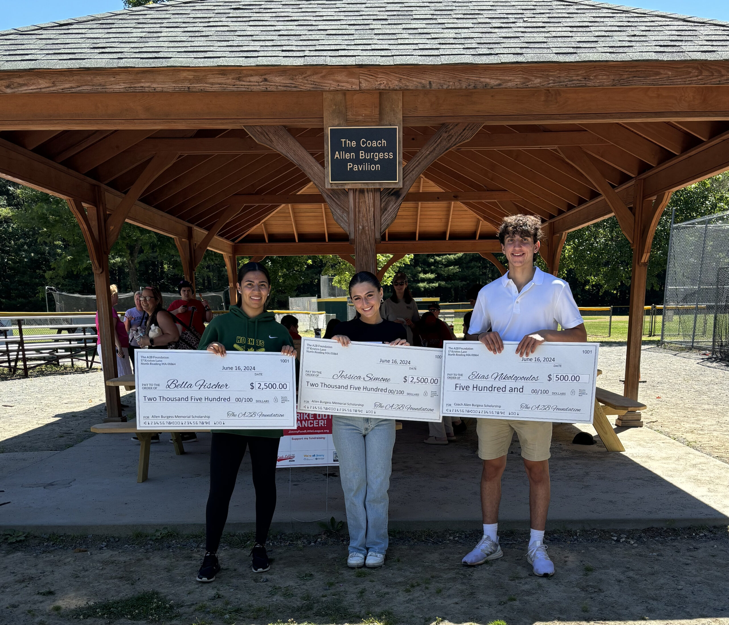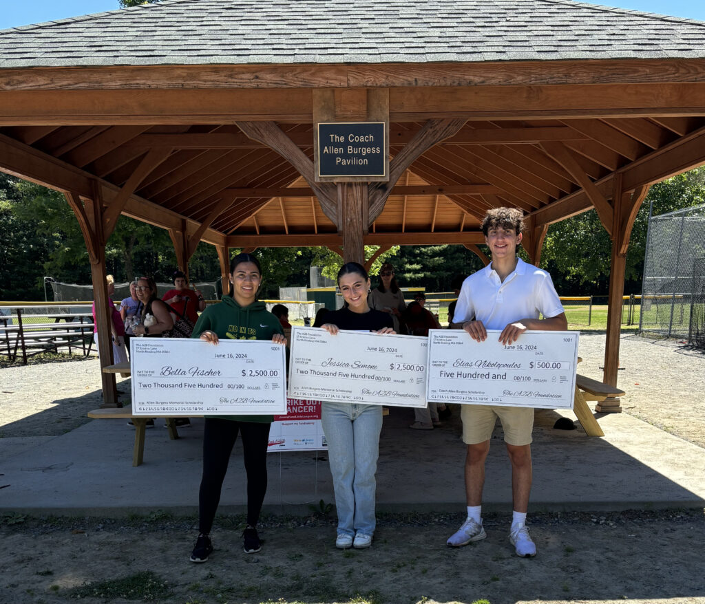 The scholarship presentation on June 16 was held at the Coach Allen Burgess Pavilion at the home of North Reading Little League, the Benevento Memorial Park on Central Street.