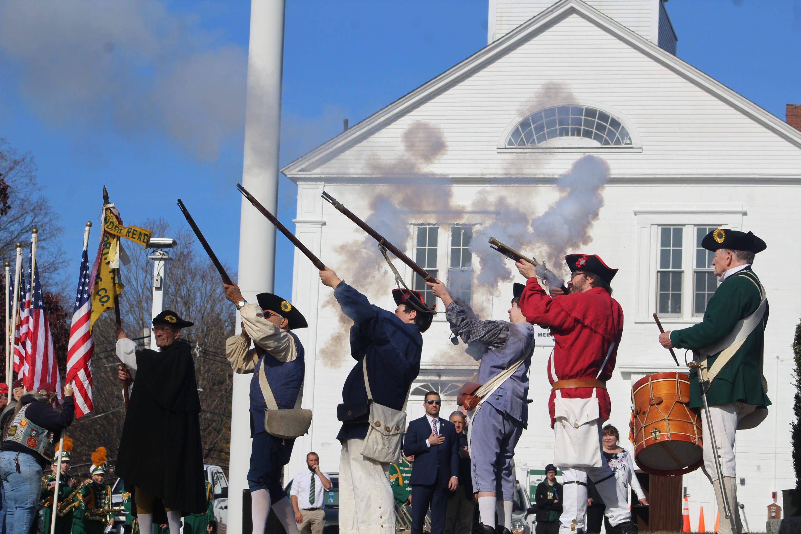 At the conclusion of Barrette’s remarks, the Marching Band played “American March Classics” which was followed by a series of three musket volleys by the North Reading Co. of Minit and Militia.