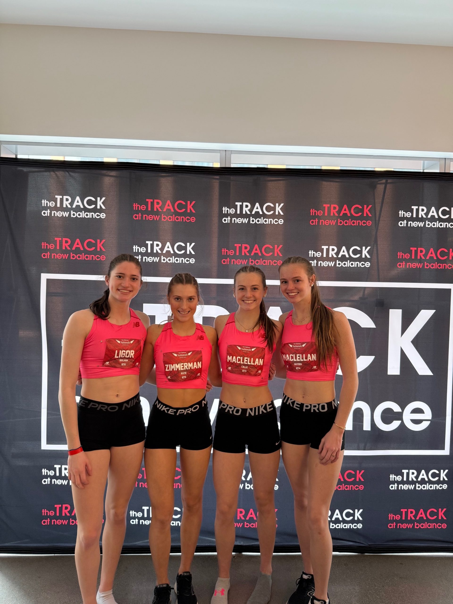 Giuliana and Callie teamed up with Hayden MacLellan and Katie Zimmerman 48 hours later and competed in the 4×55 Meter Shuttle Hurdles. The relay team had an impressive performance running the race in 34.48 seconds which smashed the previous North Reading record by over two seconds and placed 7th overall, just missing the podium as All Americans, which is reserved for the top six teams.