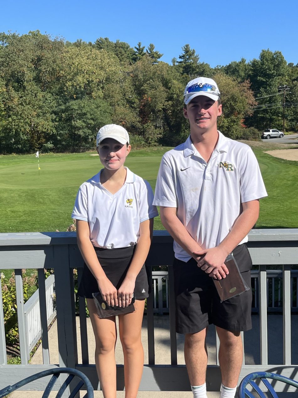 THE NRHS golf team was represented at the CAL Open on Oct. 6 by Isabel Brozena and Jason Curran. Both Hornets shot well enough to earn CAL First Team All-Star status. Brozena placed 3rd in the event while Curran took home 8th. (NRHS Athletics Photo)