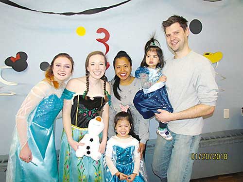 THE FRITZ FAMILY, Melissa, Dakota, Jason and Winter, enjoyed their visit at the Moose with Disney princesses Elsa (Abby Andre) and Ana (Meredith Martin) during the Disney Character Breakfast.