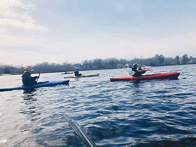 SO WHAT do you do when you are social distancing and you live on a pond at Easter? You have a kayak Easter parade! The residents of the Martins Pond neighborhood took full advantage of Sunday’s nice weather for an early spring paddle right in their own backyard. (Paula Mastro Photo)