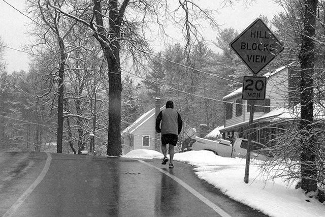 PHOTO: “Hill Blocks View” February 18, 2021 “Hill Blocks View”A RUGGED runner makes his way down Central Street undeterred by either the weather or the message on the sign he just passed. (Al Pereira/Advanced Photo) Published February 18, 2021
