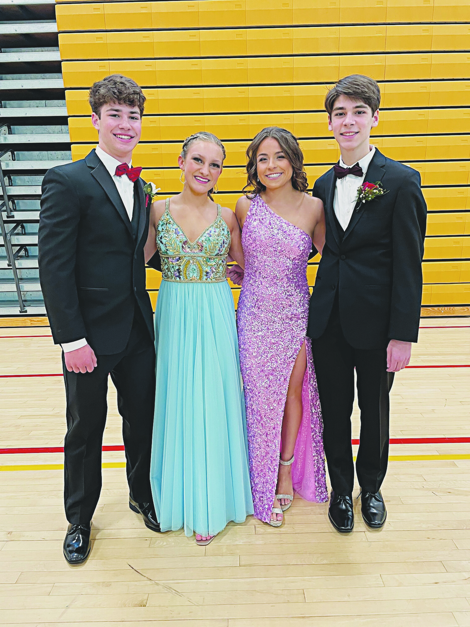 THE NRHS Class of 2023 celebrated its Junior Prom on Friday, April 8. The junior class officers worked hard to plan a memorable night for their classmates at Teresa’s Prime of North Reading. From left: President Alex Carucci, Vice President Annie Kuperstein, Treasurer Jenna DiNapoli and Secretary Shane Hanson. (Courtesy Photo)