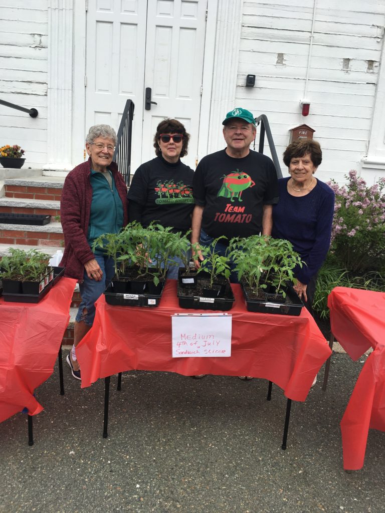 NEARLY 70 tomato plants were given away free by the Friends of the North Reading Council on Aging to anyone who requested one, complete with instruction sheet. Participating in the recent drive-up event at the Senior Center were Friends’ members (from left): Angela Mauceri, Mary and Hugo Wiberg III, and Joanna Lexth. The Friends raise funds to support programs at the Senior Center and membership is open to all. (Courtesy Photo)