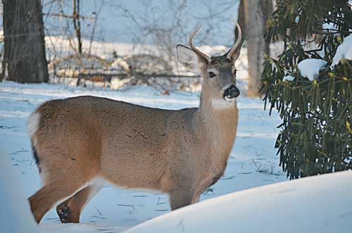 A HANDSOME and well-fed young buck unabashedly walked through the backyard and up to the Lee’s house on Aspen Road looking for a snack after the snowstorm. (Kathi Lee Photo)