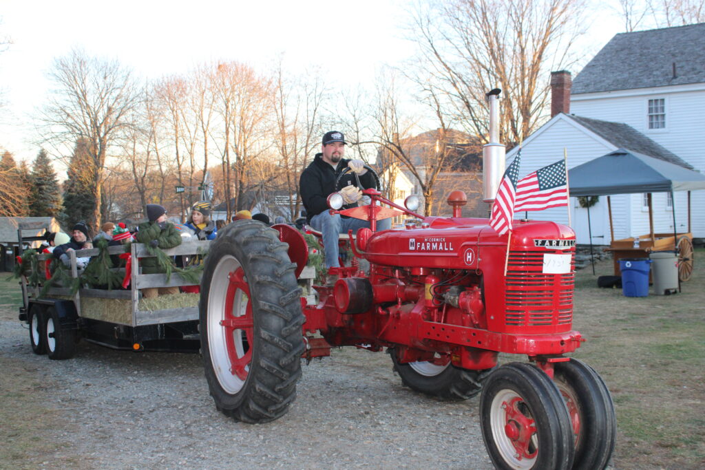 HAYRIDES, towed by a 1939 McCormick Farmall tractor driven by Matt Hall, are always very popular at the Holiday Tree Lighting. The tractor is owned by his grandfather, Gordon Hall.