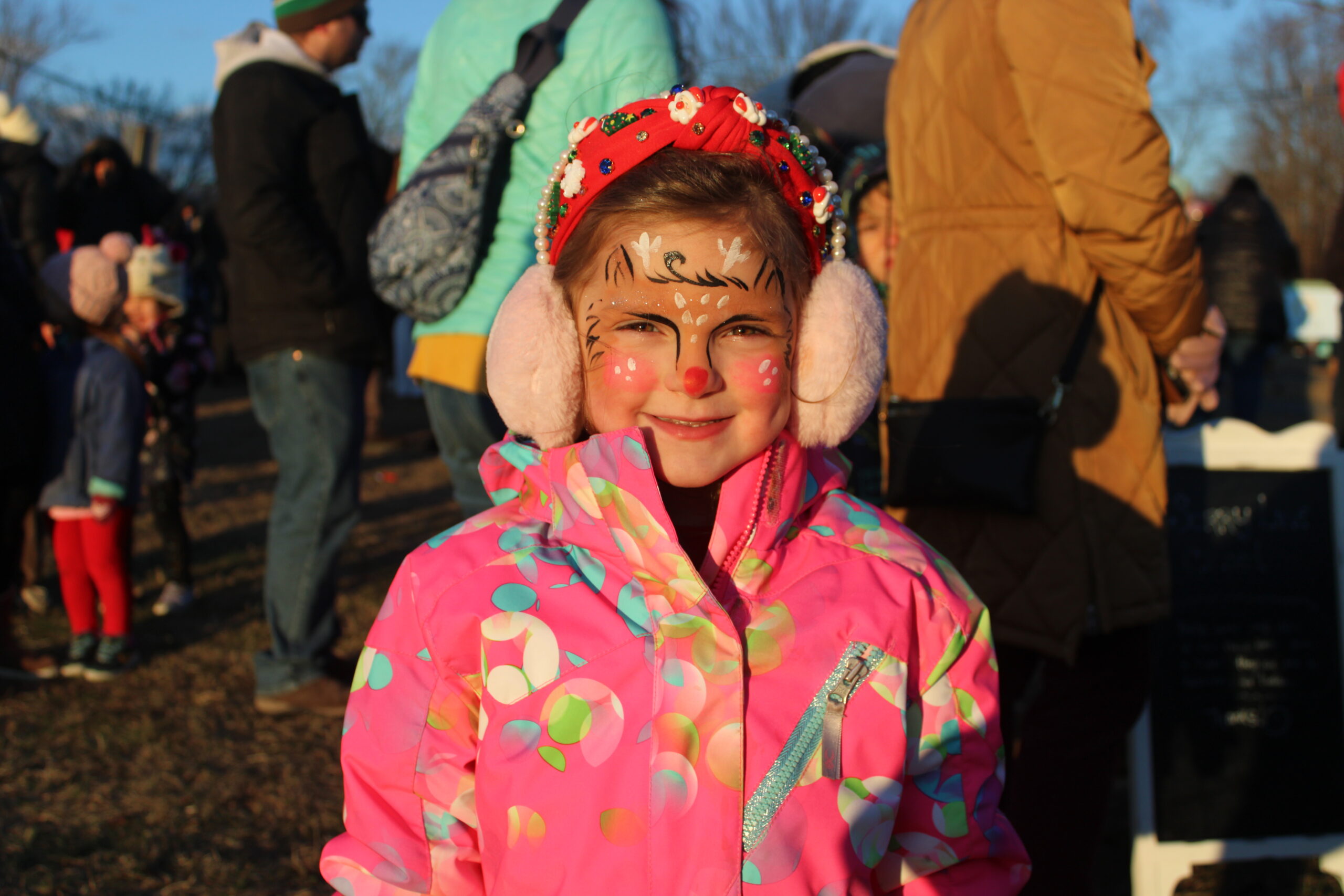 CUTE AS A BUTTON! Olivia Wallace, 5 loved being transformed into a famous reindeer by the talented face painter at the Tree Lighting.