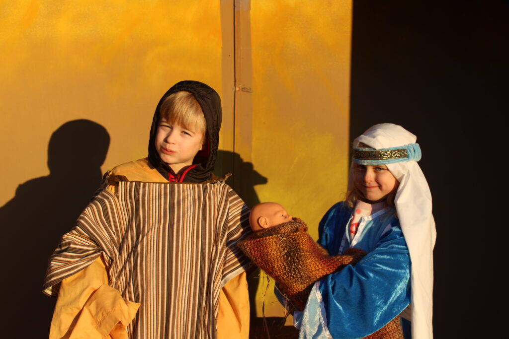 PORTRAYING a Living Nativity of Mary, Joseph and the baby Jesus at the Putnam House Barn were Lincoln and Reese Palmer. A petting zoo was also nearby and both were sponsored by the town’s churches.
