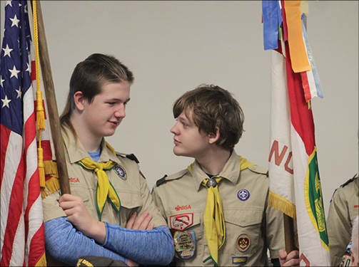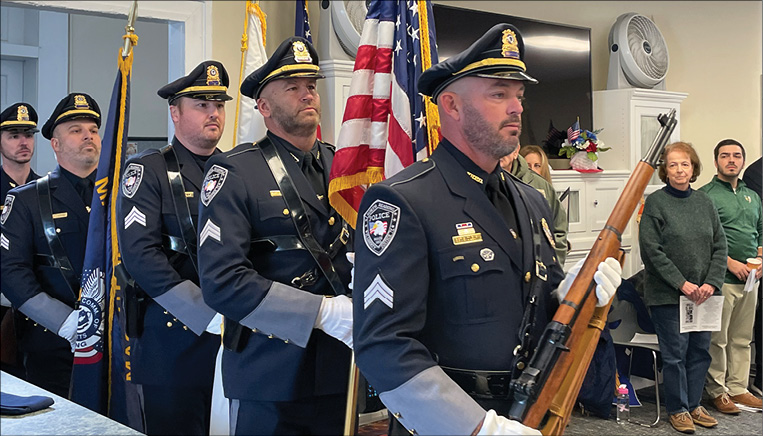 THE PRESENTATION of the Colors was conducted by the North Reading Police Department Honor Guard during the Pledge of Allegiance, led by the town’s Scouts, and the playing of the Star-Spangled Banner by the NRHS Marching Band.