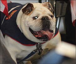 PATRIOT GUARD mascot Sarge stands guard during the annual Veterans’ Day ceremony.