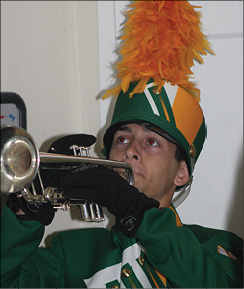 NRHS Marching Band bugler Michael Ciulla plays “Taps” during the Veterans’ Day tribute on Tuesday.