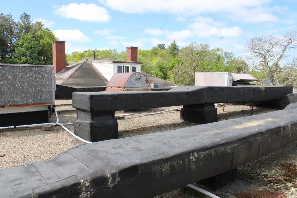 Many residents learned for the first time during the HC presentations to the Select Board May 1 and June 2 and during the Commission’s public hearing on the topic on May 15 that the function hall is attached to a portion of the original farmhouse — Holt House — that dates back to the early 1800s and was built by a descendant of men who fought at Lexington and Concord and was once the centerpiece of a 1,000-acre farm. But they also learned that much of the original building was cut off when the expansions were made over the decades, including adding on the function hall. There are some timbers in the attic that are likely original and some wide board flooring but also evidence of termite damage to original wood timbers in the basement.