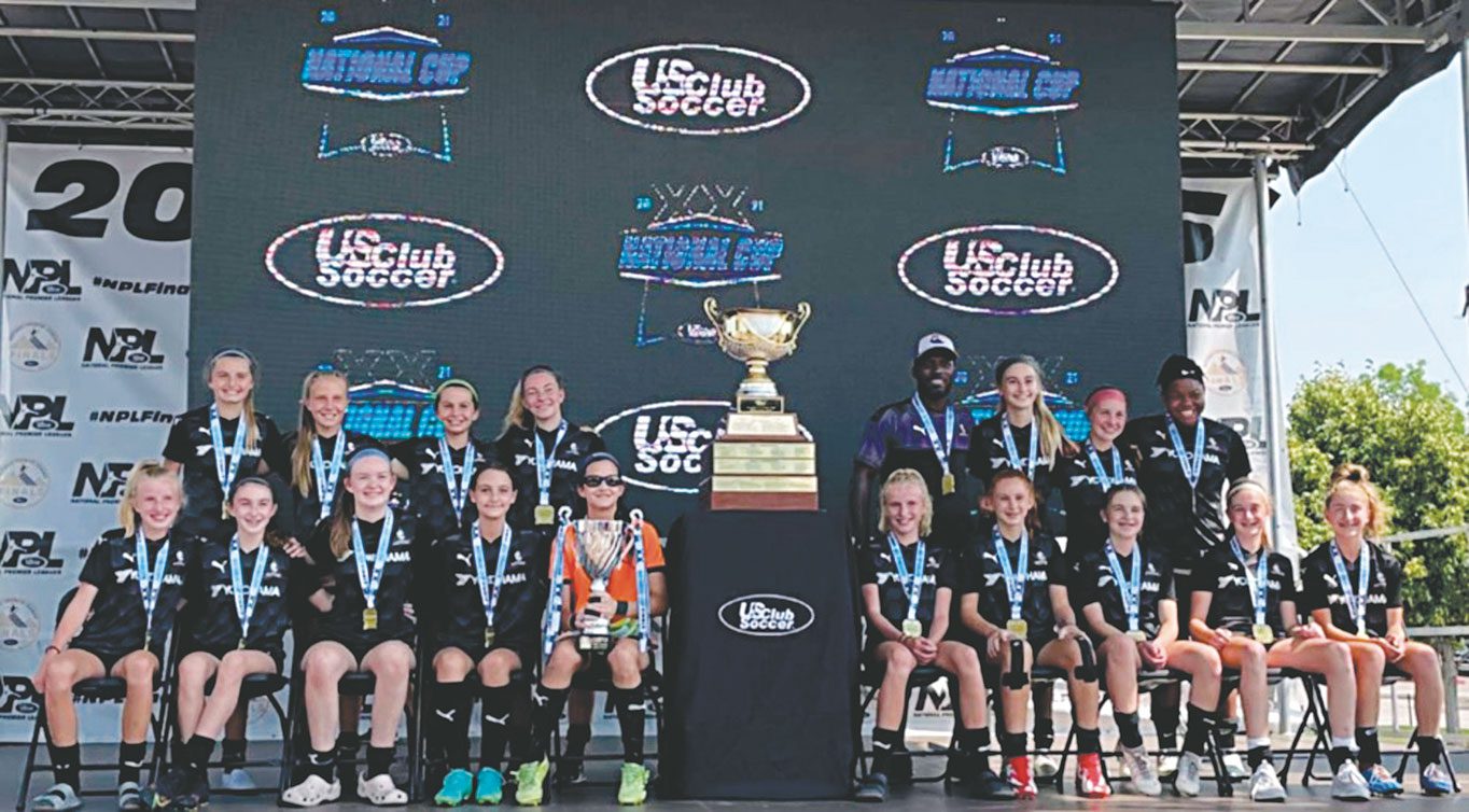 Allie Lanciani, Sydney Rech and Reilly Tassinari helped lead the 2008 girls’ team to a 5-0 record and a National Championship as they defeated the Hawaii Rush 1-0 at Dick’s Sporting Goods Park in Denver on July 20. It was the first national championship in Aztec club history. The team was coached by Mo Keita.