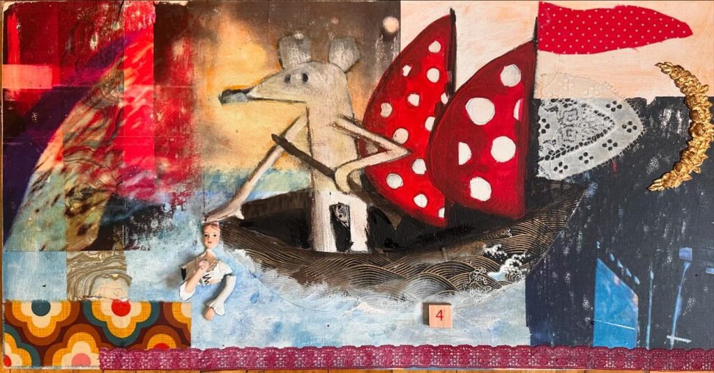Alisa Rodny is a Boston-based mixed media artist and a visual arts teacher in Boston Public Schools. Working at the intersection of creative chaos and deliberate slowness, Rodny creates pieces that evolve and reinvent themselves over time and are not constrained by reality or by demands of the marketplace.