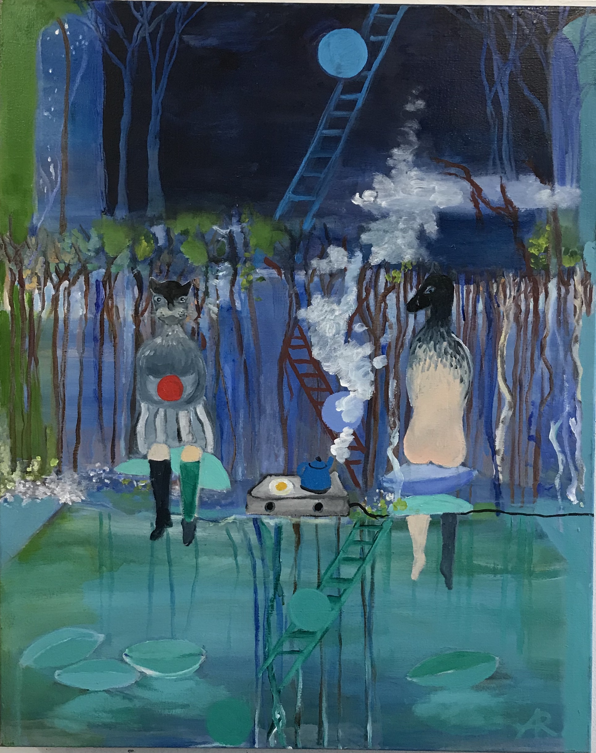 About the Artists: Moscow-born, both classically and conceptually trained, Alexandra Rozenman brings a canny and charming mysticism to her life and art. Rozenman came to America from Moscow, Russia as a political refugee at the end of the eighties. She creates her personal and often surreal world, where shapes, colors and images are often utilized like words in a story.