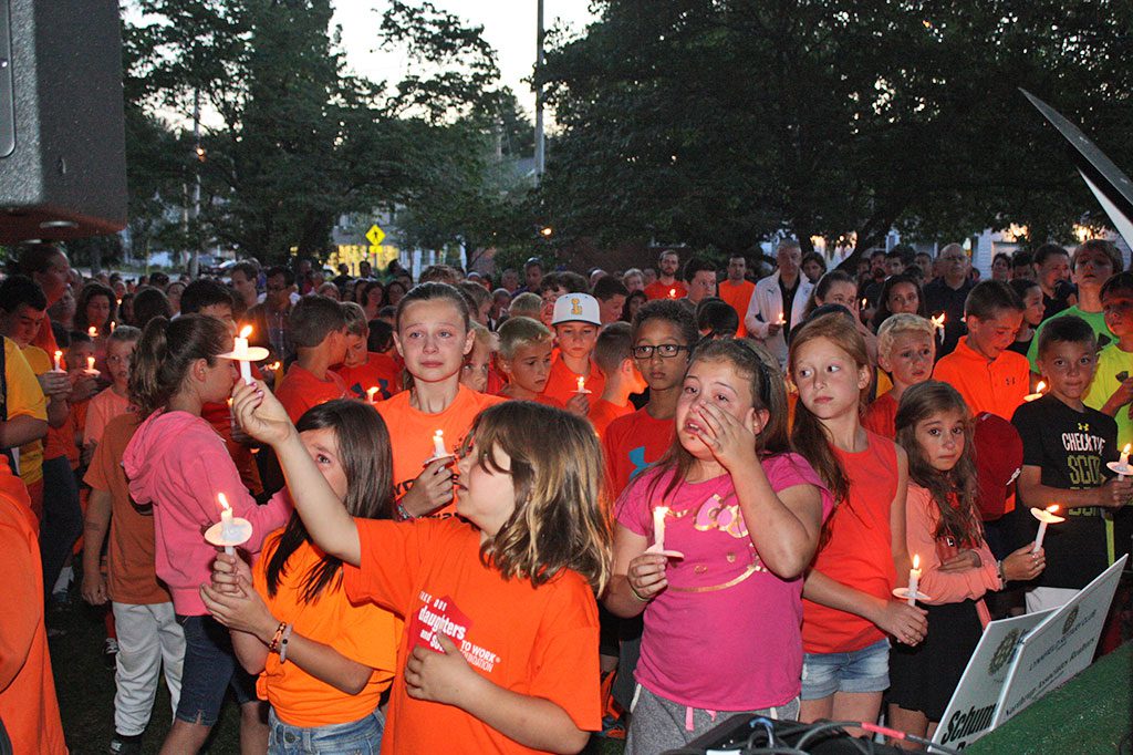 LYNNFIELD — The glow of over 1,000 candles, most held by tiny hands, flickered in the night sky against an ocean of orange on the town common last Thursday.