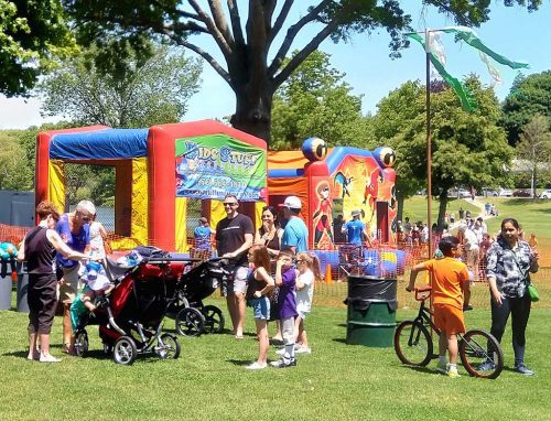 Children enjoyed themselves, too, as they watched bubbles flying out of a bubble machine mounted on the Bandstand and took turns jumping inside a bounce house.