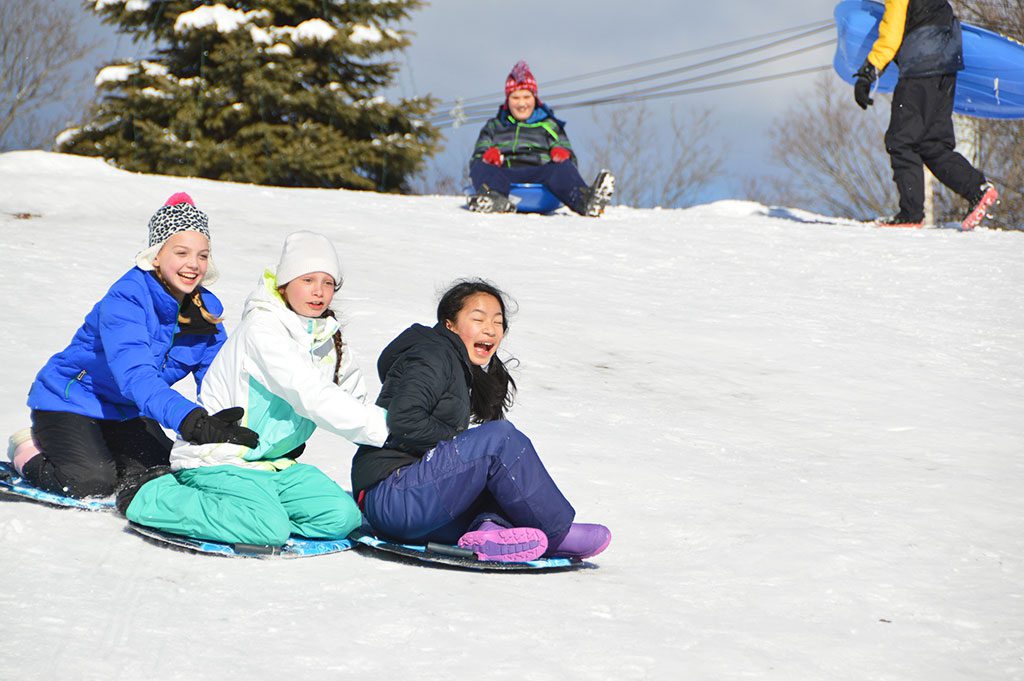 THE FIRST SIGNIFICANT storm of the season dropped about six inches of snow on the town last weekend, the harbinger of a much heavier blizzard that arrived on Tuesday and dumped 30 inches. From left: Analise Gonzalez, Sophia Galuppo and Mia Wieczorek take the down hill challenge on the common. (Bob Turosz Photo)