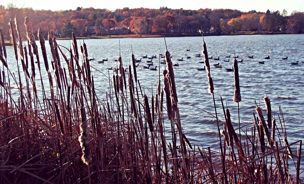 A GAGGLE of geese are shielded by a wall of cattails along the Lakeshore on the Lower Common. (Mark Sardella Photo)