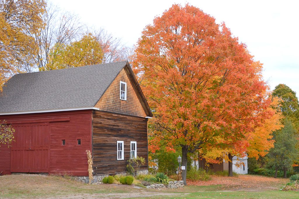 THE PUTNAM HOUSE BARN and a gorgeous orange maple tree show the beauty of autumn foliage on Bow Street. (John Friberg Photo)
