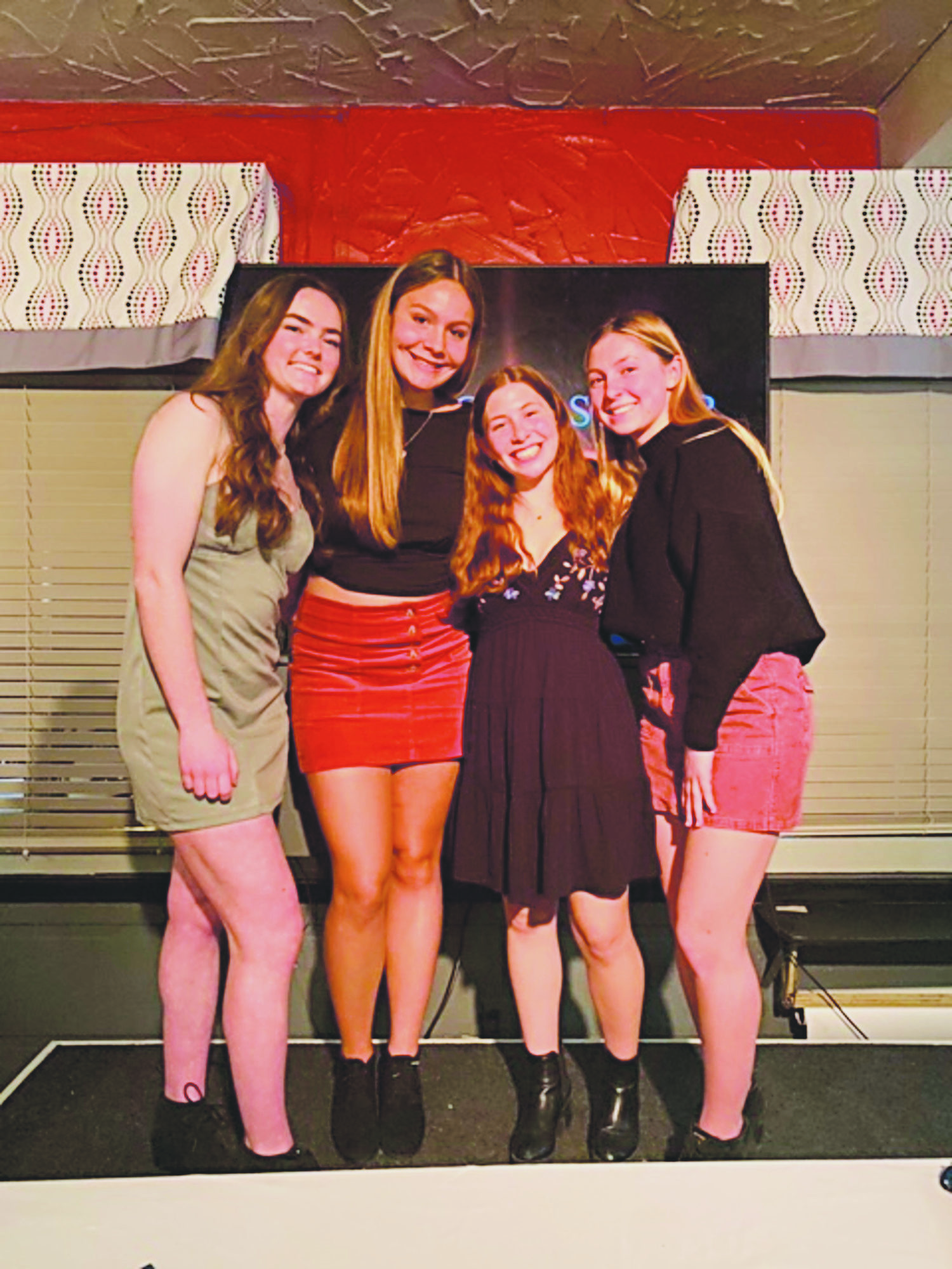 THE MELROSE High girls’ soccer team celebrated their season with a banquet at Prince Pizza. There, they named their captains for next season: Ava Tormo and Talya Hamberg, who are pictured center (L-R) with outgoing captains Katherine Carney (left) and Lucy Hannon (right.) (courtesy photo)
