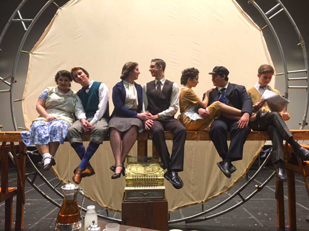 The cast of Noel Coward’s “Brief Encounter” prepares for the METG Drama Festival preliminary competition this Saturday, March 4 at North Reading High School. The NRHS Masquers lead off the day with a 9 a.m. performance, followed by seven other plays throughout the day. Each $10 ticket, available at the door, gains entry to any or all of the eight plays. Note that some plays contain mature themes. Pictured (L-R): Michela Prisco, Sam Barrette, Valerie Stebbins, Owen DeCleene, Neva Ventullo, Sam Giunta, Joey Costantino. (Courtesy Photo)