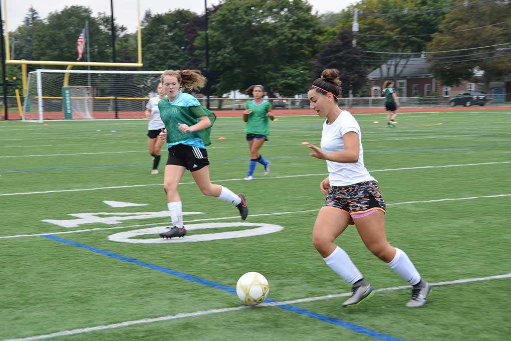 SENIOR GIANA MOSCARITOLO controls the ball as the NRHS girls soccer team practiced at Arthur Kenney Field last week. This year’s squad is looking to improve on last year’s Division 3 North Championship. (Bob Turosz Photo)