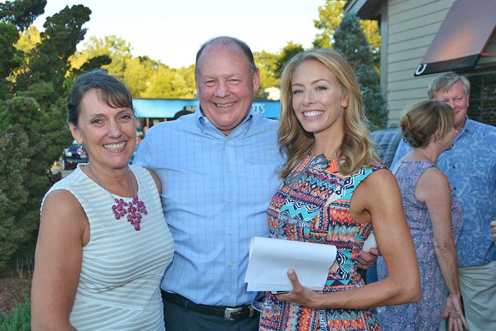 JENNY JOHNSON, co–host of NESN’s TV show “Dining Playbook” joins Horseshoe Grille owners Kathi and Pat Lee on the restaurant’s patio for their celebration of the Horseshoe’s 90th anniversary Monday. A full house of guests attended the affair. (Bob Turosz Photo)