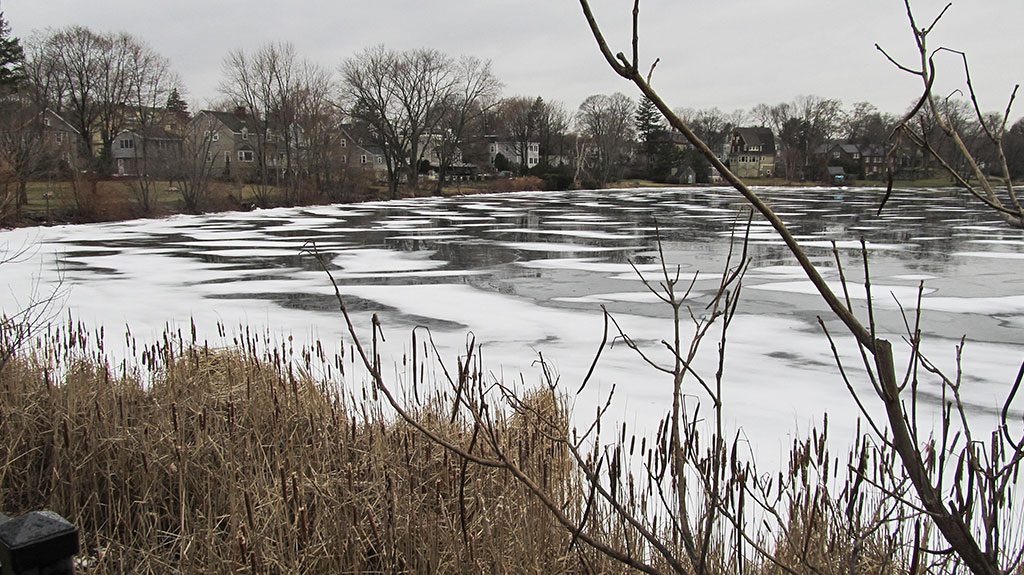 THE weekend thaw brought ice floes to Lake Quannapowitt. (Gail Lowe Photo)