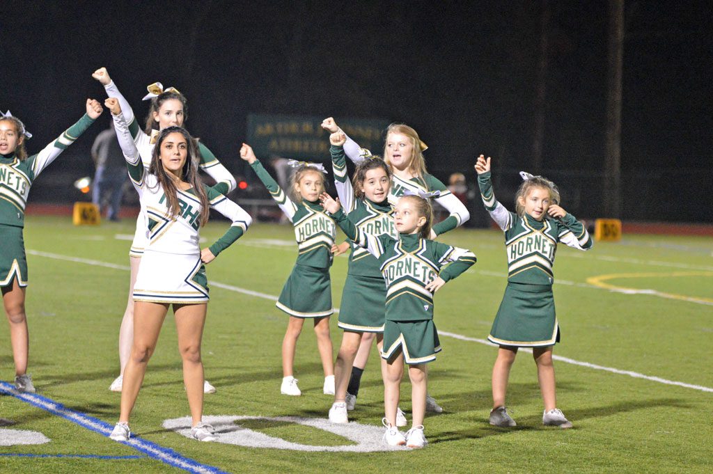 NORTH READING YOUTH CHEERLEADERS were thrilled to take the field with the NRHS varsity at a recent home football game and performed for everyone’s enjoyment. (Bob Turosz Photo)