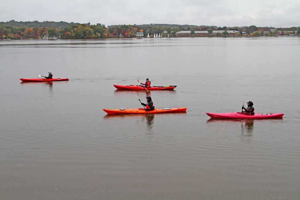LAKE QUANNAPOWITT was as smooth as glass for these kayakers last weekend. (Donna Larsson Photo)