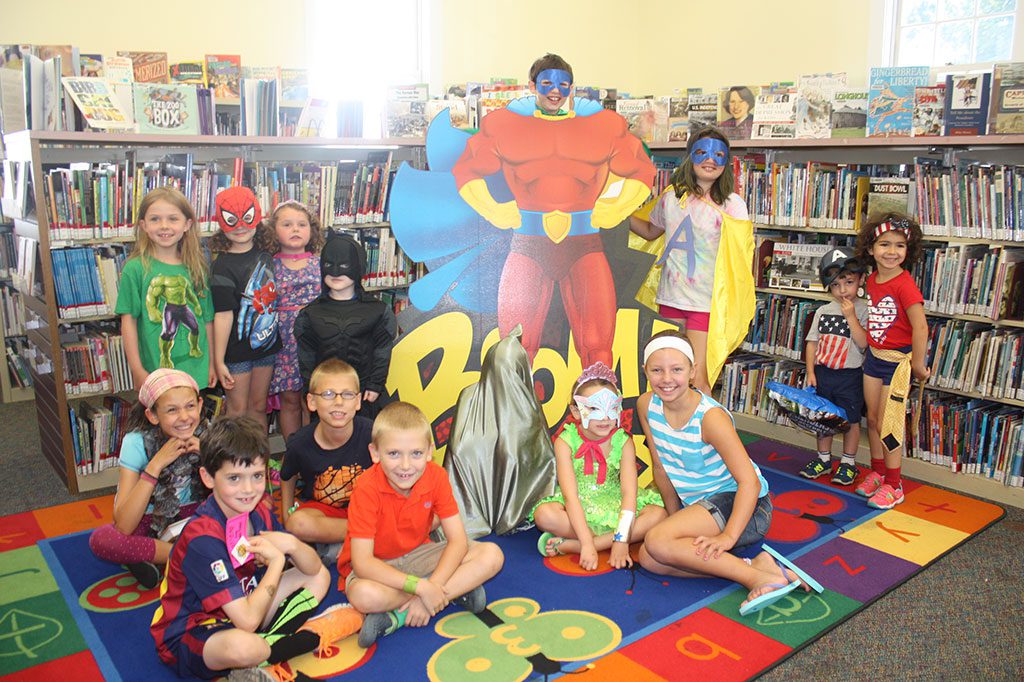EVEN superheroes love a parade. Participants in the Summer Reading Program and their guests enjoyed an end-of the-summer celebration at the Lynnfield Public Library on Friday. In keeping with the program theme of “Every Hero Has a Story,” the party included a costume parade through the library with the children dressed as their favorite superheroes. The 99 children enrolled logged a combined 1,678 hours of reading this summer and 40 won the grand prize of tickets to the Topsfield Fair with lunch and a ride. (Maureen Doherty Photo)