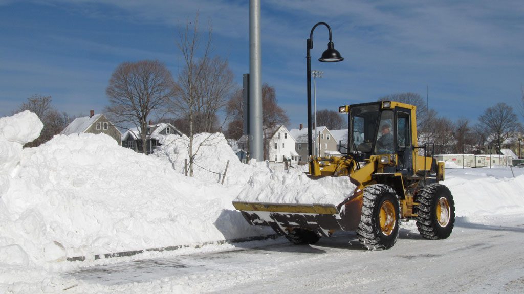 PRIVATE Contractor John DiTonno was busy at work on Wednesday clearing the Galvin Middle School driveway and parking lot. DPW workers and private contractors will probably continue their snow removal efforts throughout the weekend and into Monday. Some weather forecasters are calling for another foot of snow.