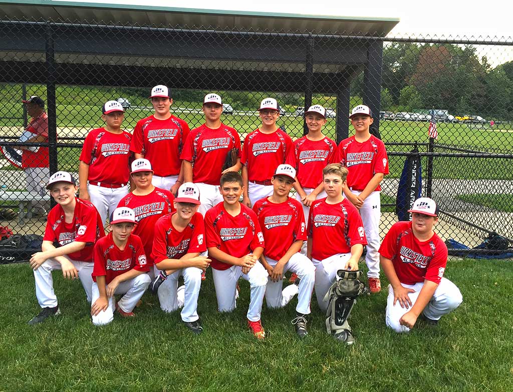 THE WAKEFIELD American League 12 year-old All-Stars have advanced to the district 13 semifinals which will take place tonight in Stoneham. Wakefield finished with a record of 4-1 in the first round of tournament games. The team got great pitching from Nathan Ickes, Luke Ickes, David Amyouny and also great relief pitching from John Porter. The All-Stars have played great defense all tournament, and also got clutch hitting from Matt Elwell who has hit two game-winning home runs. Pictured front row left to right: Dillon Johnson, Drew Barrett, Tyler Sandanato, Andrew Almquist, Will Garside, Tommy Grover, Matt Elwell and David Amyouny; back row left to right: Chris Munroe, Nate Ickes, Philip D’Alleva, Luke Ickes Gianni Mercurio and John Porter.
