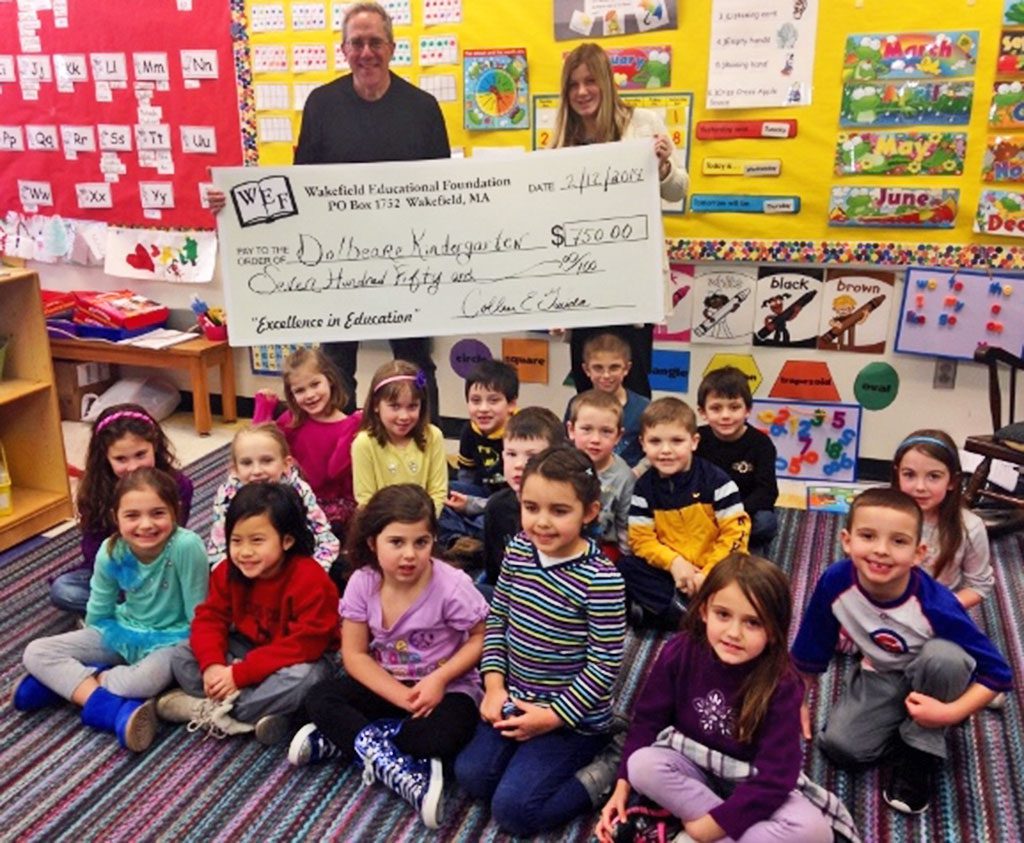 THE WAKEFIELD EDUCATIONAL FOUNDATION congratulates Dolbeare kindergarten staff member Jennifer Snipe. As part of WEF’s 2013 Grant program she received funding toward a visit from author David Biedrzycki. He gave a presentation to all kindergarten students, giving them the opportunity to learn about writing and illustrating. Pictured are author David Biedrzycki, Jennifer Snipe and her 2013 kindergarten class. The Wakefield Educational Foundation is a non-profit organization dedicated to promoting academic excellence in the Wakefield Public Schools. Visit www.wakefieldeducationalfoundation.org for ordering information and to see how WEF is putting your donation to work.