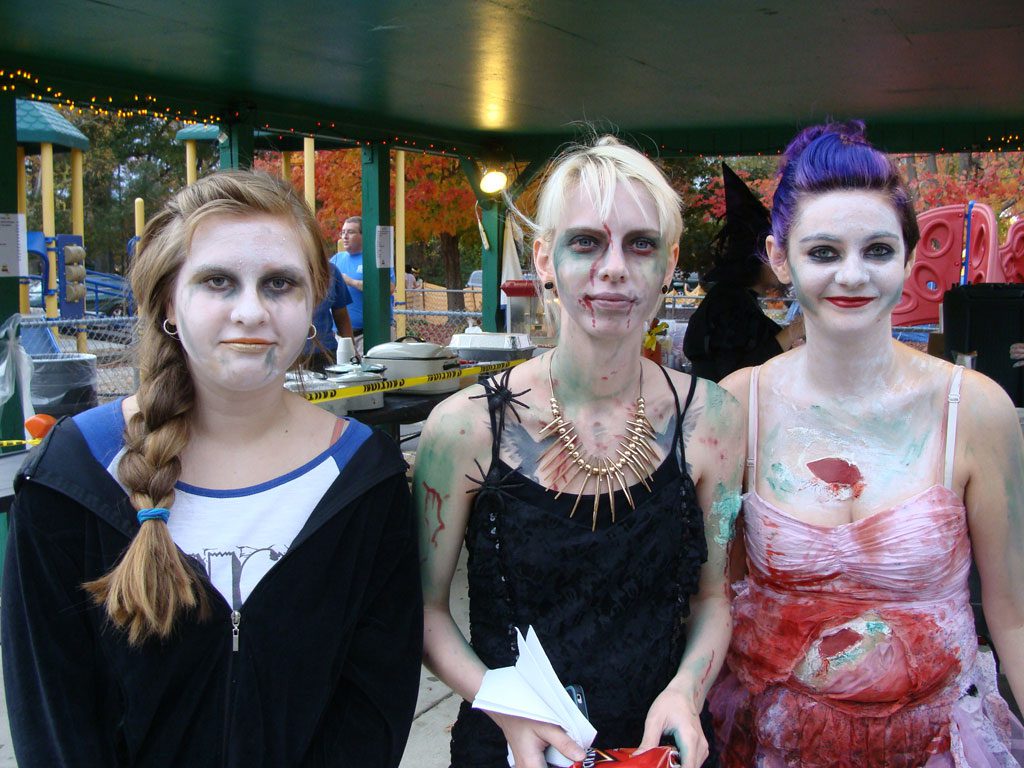 ZOMBIE AWARD NOMINEES Madison Koury, Caitlin Trudell and and Brigid Geoffrion Scannell were nominees for the Zombie Award in the Red Carpet skit at the 20th annual Martins Pond Haunted Playground sponsored by the Martins Pond Association. (Lori Lynes Photo)