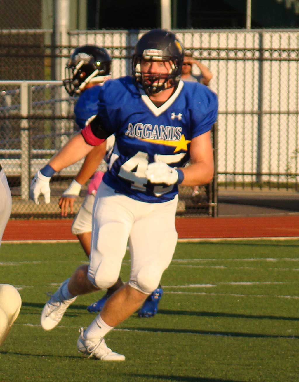 Balestrieri practiced all week as the starting fullback and played most of the offensive plays. But with the South marching through the North defense, he was inserted at linebacker alongside Finn in the second half and picked up 2½ tackles, including one on the goal line that temporarily prevented a touchdown. He served as a blocking back for Santos most of the night, but did catch one pass. He’ll be playing linebacker for Salve Regina this upcoming season.