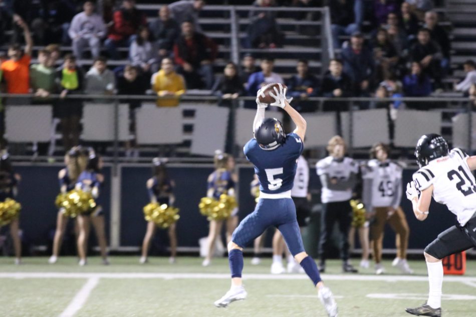 On the first offensive snap, Pioneers sophomore quarterback Tyler Adamo (9-12, 193 yards, 3 touchdowns) stepped back and heaved a deep shot for junior receiver Joey Cucciniello (3 catches, 88 yards, 2 touchdowns). Cucciniello caught the sophomore’s pass in stride before galloping 65-yards down the right sideline to give the home team an early 6-0 lead.