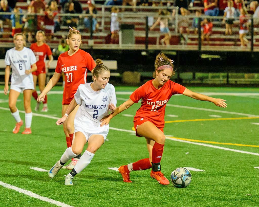 The Wakefield game was played in a downpour, which made the win more impressive. “The wind was actually a bigger factor than the rain,” pointed out Melrose head coach Olivia Downey. “It did play a role in the game.”