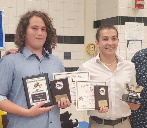 The Lynnfield Scholar Athlete Award went to senior co-captain, Rafik Khodr, who was also a CAL First-Team All-Star along with his first doubles partner, Russell Kasdon.