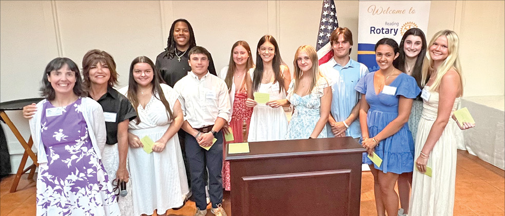 READING — The Reading Rotary recently recognized 11 outstanding local students as recipients of the prestigious Service Above Self scholarships at Rotary’s annual Installation and Scholarship Night, held on July 21 at Café Escadrille in Burlington.