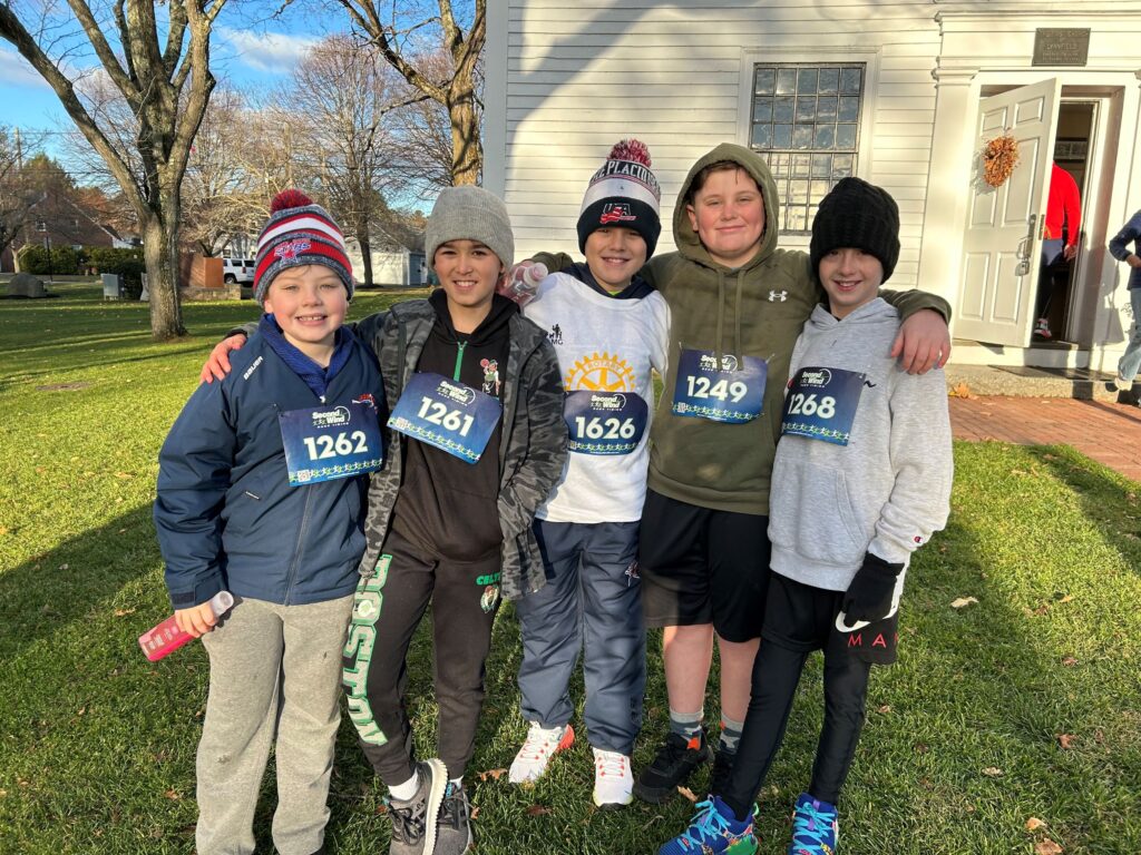 FIFTH-GRADERS, from left, Matty Geary, Vito Itzkowitz, Connor Routhier, Ben Halpern and Enzo Incerto had a great time at the recent Turkey Trot 5K Road Race. Lynnfield Rotary, the Julie Routhier Foundation and the Lynnfield Moms Group co-sponsored the 5K once again. (Courtesy Photo)