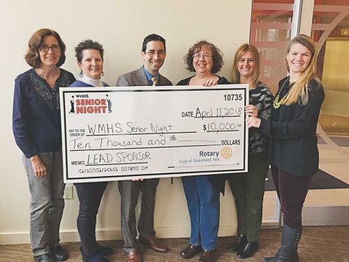 WAKEFIELD — The Wakefield Memorial HIgh School (WMHS) Senior Night Committee is excited to announce Wakefield Rotary as the lead sponsor for the inaugural 2018 fundraising campaign. Rotary’s $10,000 donation has helped move WMHS’s Senior Night Committee closer to its fundraising goal.